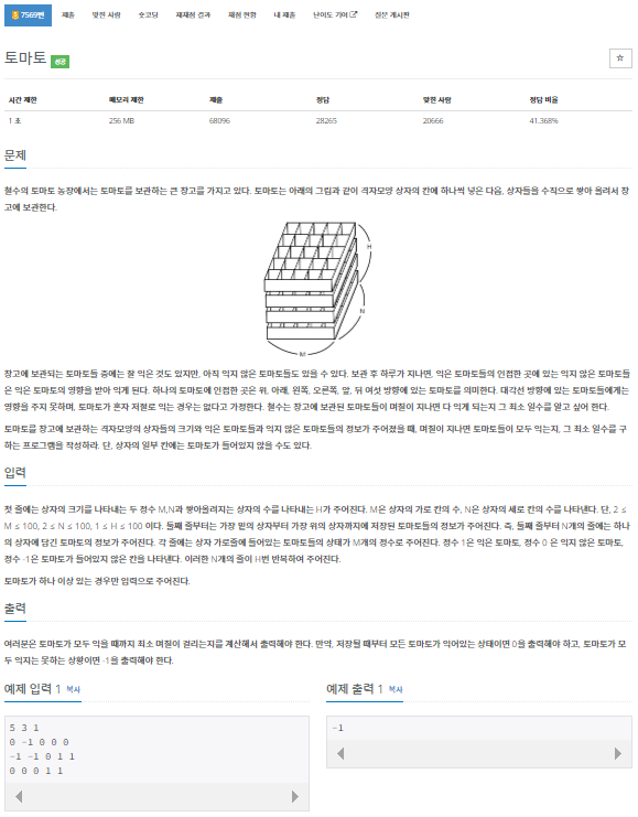 문제 링크 : https://www.acmicpc.net/problem/7569