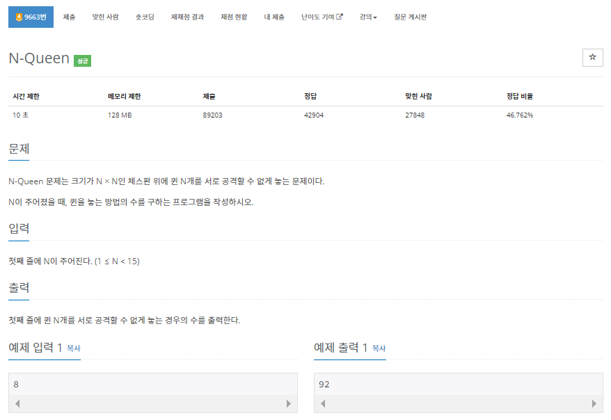 문제 링크 : https://www.acmicpc.net/problem/9663