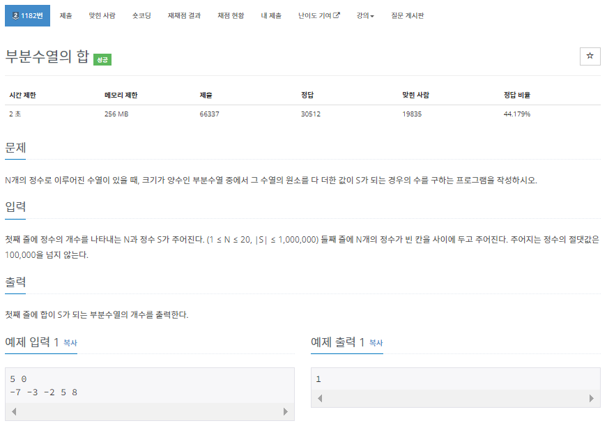 문제 링크 : https://www.acmicpc.net/problem/1182