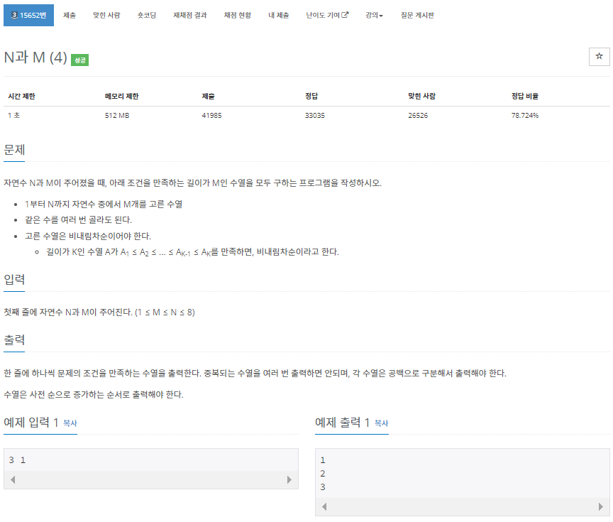 문제 링크 : https://www.acmicpc.net/problem/15652