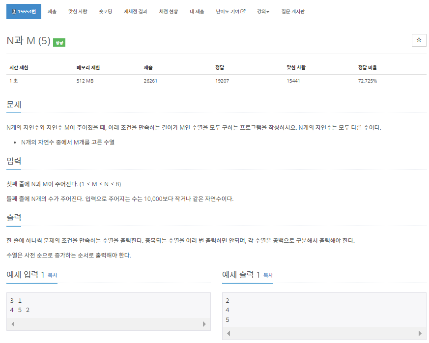 문제 풀이 : https://www.acmicpc.net/problem/15654