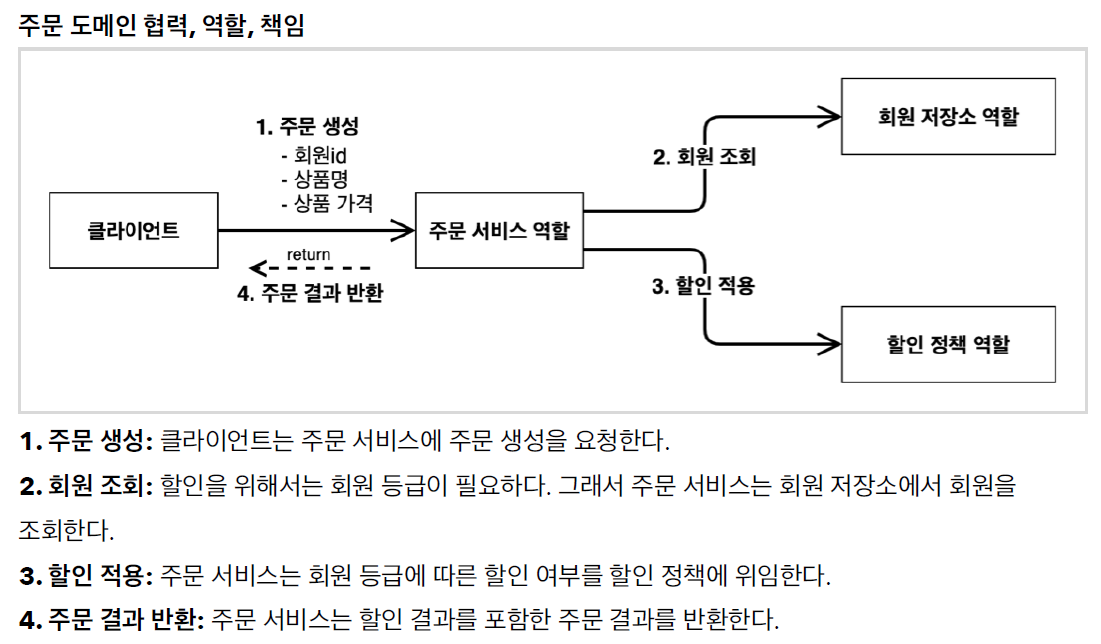 return new Order(memberId, itemName, itemPrice, discountPrice);