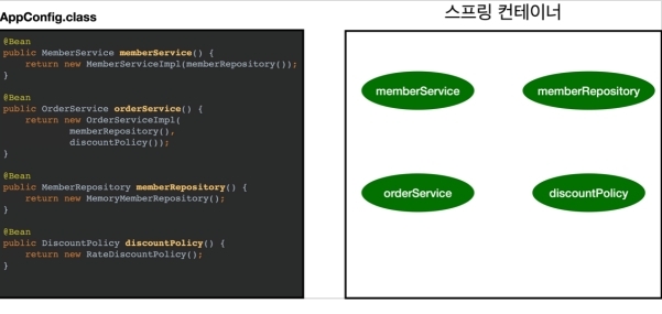 new AnnotationConfigApplicationContext(AppConfig.class) : 이 클래스는 ApplicationContext 인터페이스의 구현체이다.