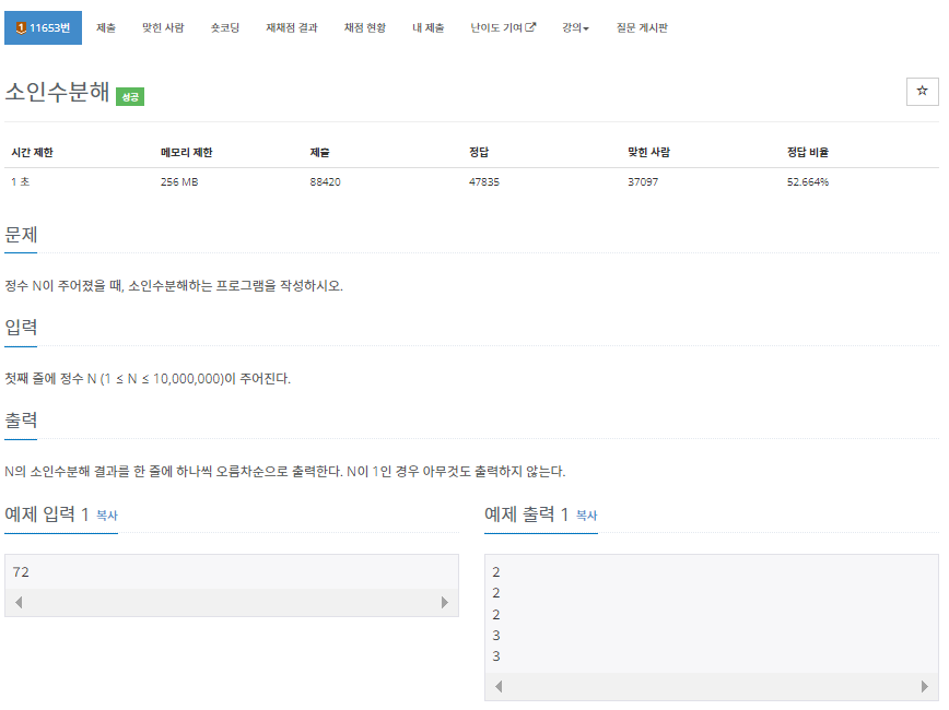 11653번: 소인수분해