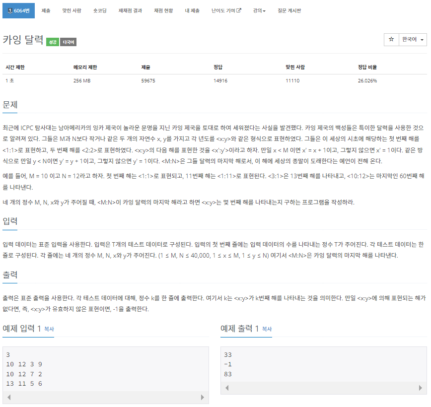 문제 링크 : https://www.acmicpc.net/problem/6064