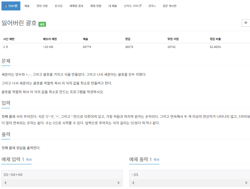 문제 링크 : https://www.acmicpc.net/problem/1541