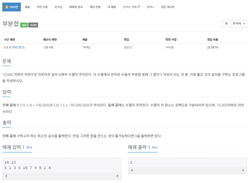 문제 링크 : https://www.acmicpc.net/problem/1806