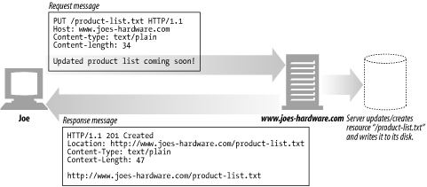 - PUT: 서버에 리소스를 생성 또는 갱신하기 위해 사용하는 메서드이다. 요청된 리소스를 지정된 위치에 저장하거나, 해당 위치에 이미 존재하는 리소스를 갱신한다.