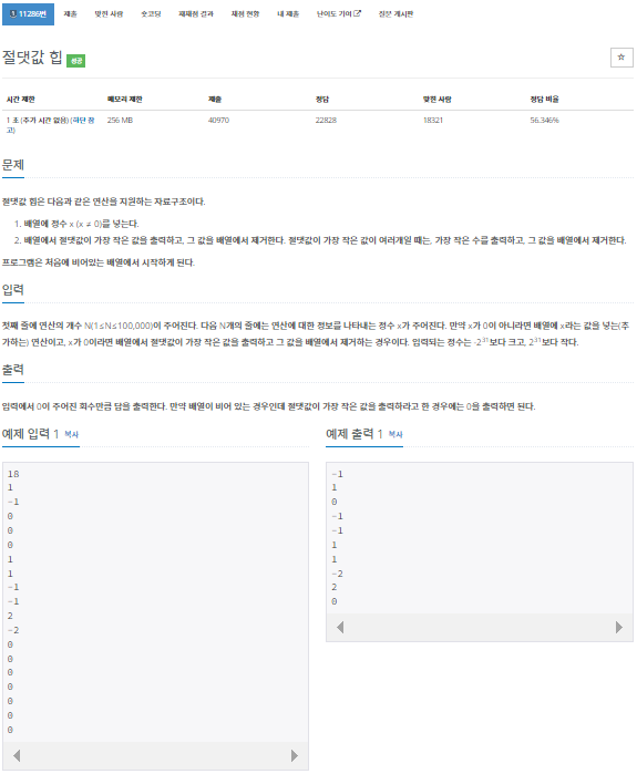 문제 링크 : https://www.acmicpc.net/problem/11286