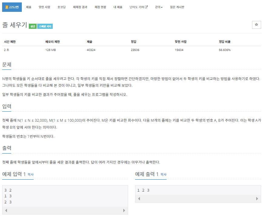 문제 링크 : https://www.acmicpc.net/problem/2252