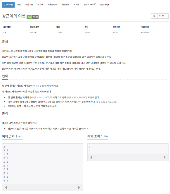 9372번: 상근이의 여행