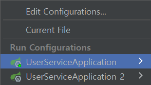 UserServiceApplication을 선택한 상태에서 복사 버튼을 눌러 UserServiceApplication-2를 생성한다.