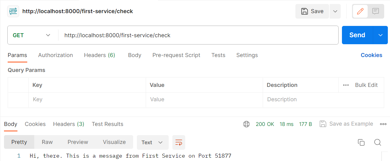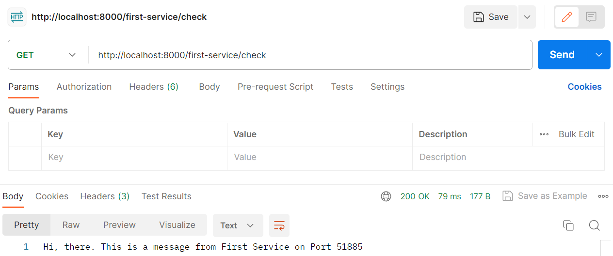 return String.format("Hi, there. This is a message from First Service on Port %s",
