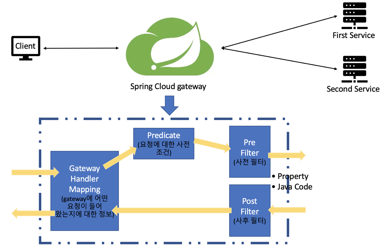 Spring Cloud Gateway의 필터에 대한 간단한 그림이다.