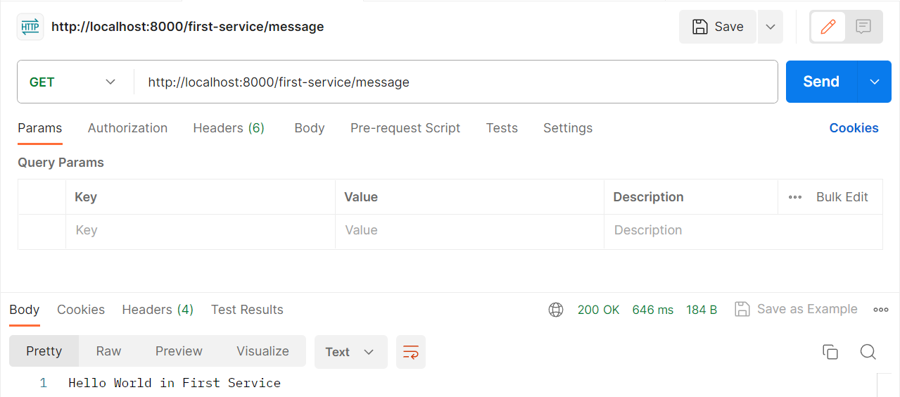 FIRST-SERVICE를 수정하여, 어느 포트에서 구동 중인 FIRST-SERVICE를 사용한 것인지 확인할 수 있게 만들어보자.