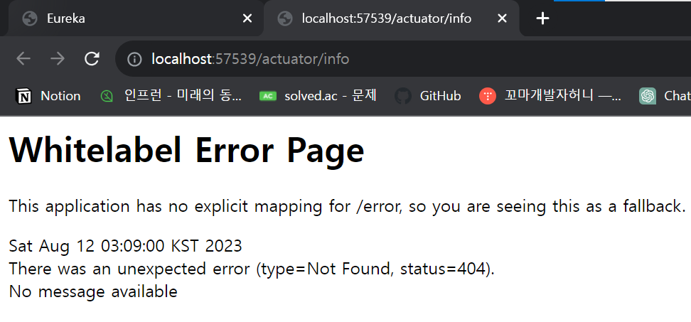 아래처럼 랜덤으로 부여된 57539 포트에서 잘 실행됨을 브라우저에서 확인할 수 있다.