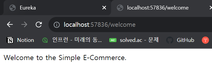 터미널에서 discovery-service를 구동한 후 브라우저에서 잘 실행되는지 확인한다.