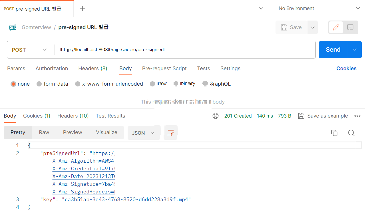 위의 메서드를 사용한 Pre-Signed Url 발급
