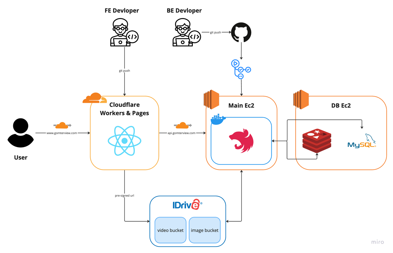 위의 그림은 실제로 필자가 진행한 프로젝트의 구조도이다. 만약 위 프로젝트의 사용자 입장에서 서비스를 사용하려고 한다면, 프론트 페이지(React)에 접속하고, 백엔드 서버(NestJS)의 API를 통해 필요한 데이터를 받음으로써 서비스를 완전하게 사용할 수 있다. 이는 서비스의 개발자들이 프론트 페이지를 Cloudflare를 사용해서 배포를 하였고, 백엔드 서버도 AWS EC2를 통해 배포를 해두었기에 가능한 일이다. 배포를 진행하지 않았다면, 외부의 사용자는 서비스를 사용할 수도, 애초에 접속할 수도 없다. 이처럼 배포는 서비스 사용자를 위한 활성화의 개념으로 생각할 수 있다.