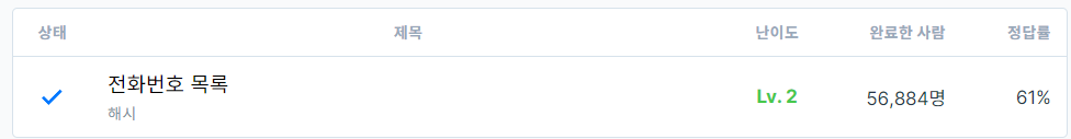 문제 링크: https://school.programmers.co.kr/learn/courses/30/lessons/42577