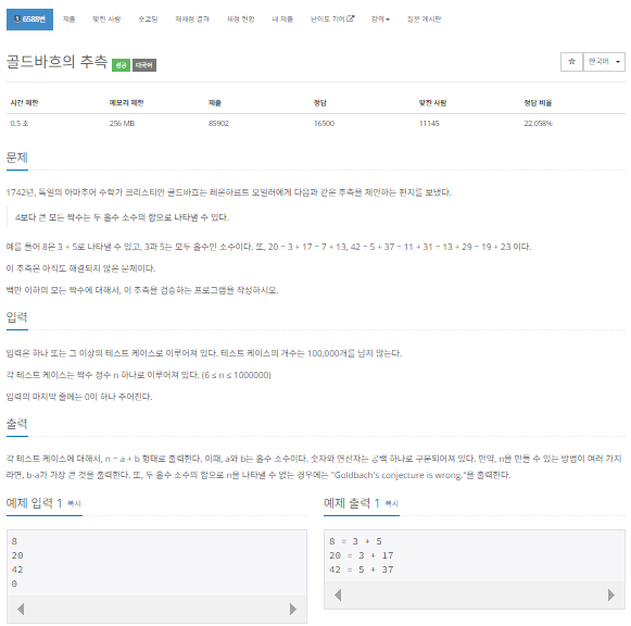 print("Goldbach's conjecture is wrong.")'알고리즘 > 알고리즘 문제 풀이' 카테고리의 다른 글