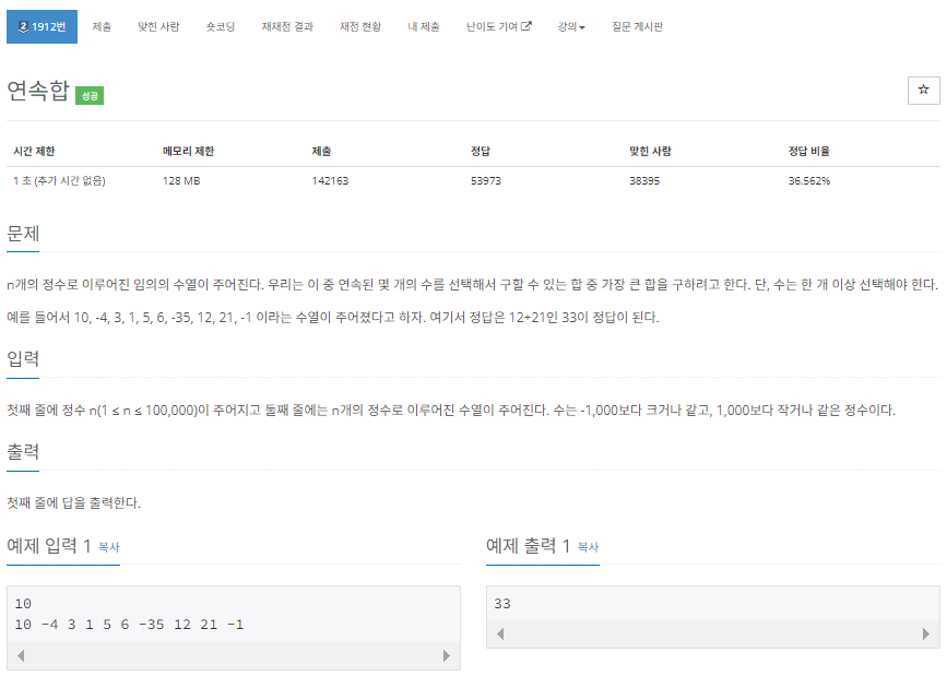 _max[i] = max(arr[i], _max[i-1] + arr[i]) # 현재 인덱스까지의 최대값(현재값 또는 이전까지의 최댓값 + 현재값)을 저장한다.