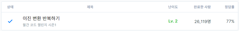 _iter += 1 # 이진 변환의 횟수 업데이트