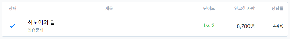 hanoi(n-1, start, end, mid, answer) # n-1개의 원판을 출발지에서 목적지를 거쳐 중간 위치로 이동