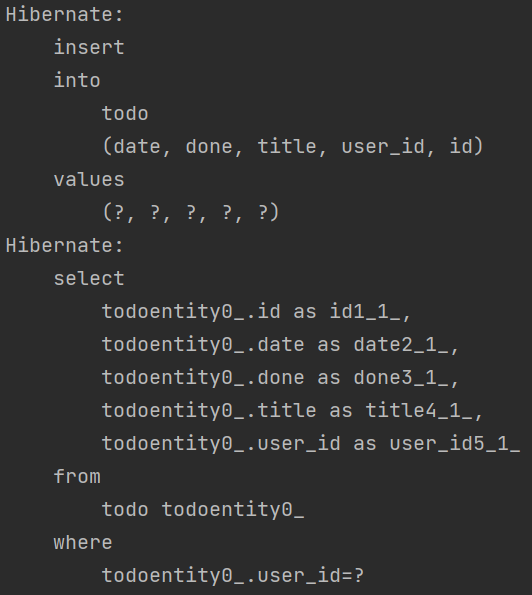 콘솔 창에도 마찬가지로 자동으로 SQL문이 실행되어서 데이터가 DB에 입력되었음을 확인할 수 있다.