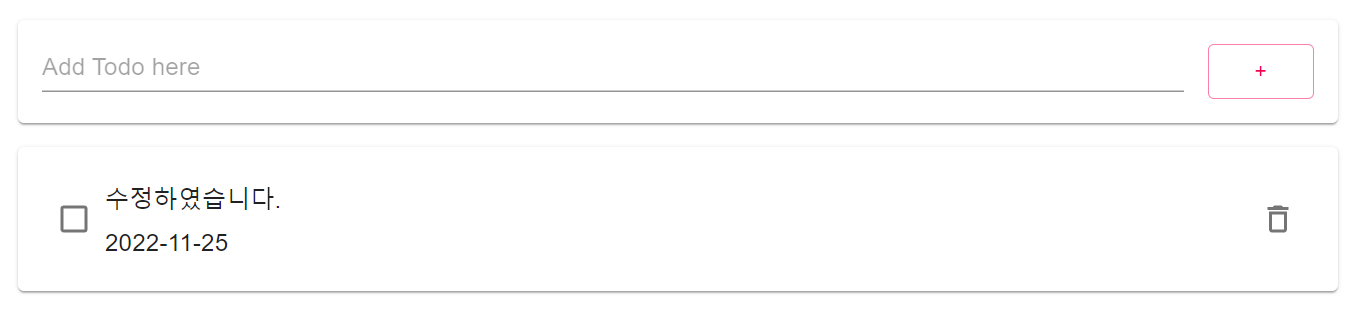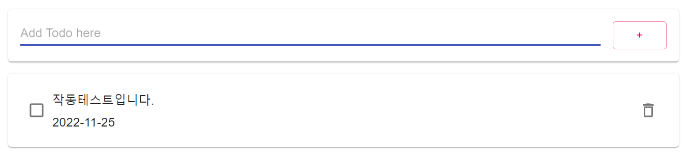 엔터키를 입력하거나 + 버튼을 클릭하게 되면 위와 같이 ToDo가 생성되어 화면에 나타남을 확인할 수 있다.