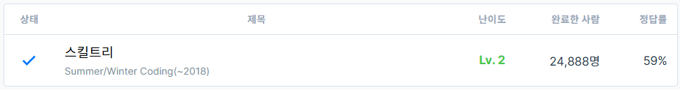 스킬트리대로 스킬을 하나씩 배워나갈 때마다 해당 스킬이 선행 관계가 존재하는 스킬인 경우, 그 스킬이 순서에 맞게 배워졌는지 체크하고 만약 그렇지 않다면 이는 옳지 않은 스킬트리이므로 바로 배제하고, 스킬트리의 모든 스킬들을 모두 무사히 배웠다면 이는 올바른 스킬트리인 것이다. 즉, 스킬이 선행 관계가 존재하는 스킬인지 확인하는 로직과 순서에 맞게 배워졌는지 체크하는 로직을 코드로 구현하면 쉽게 풀 수 있는 문제이다.