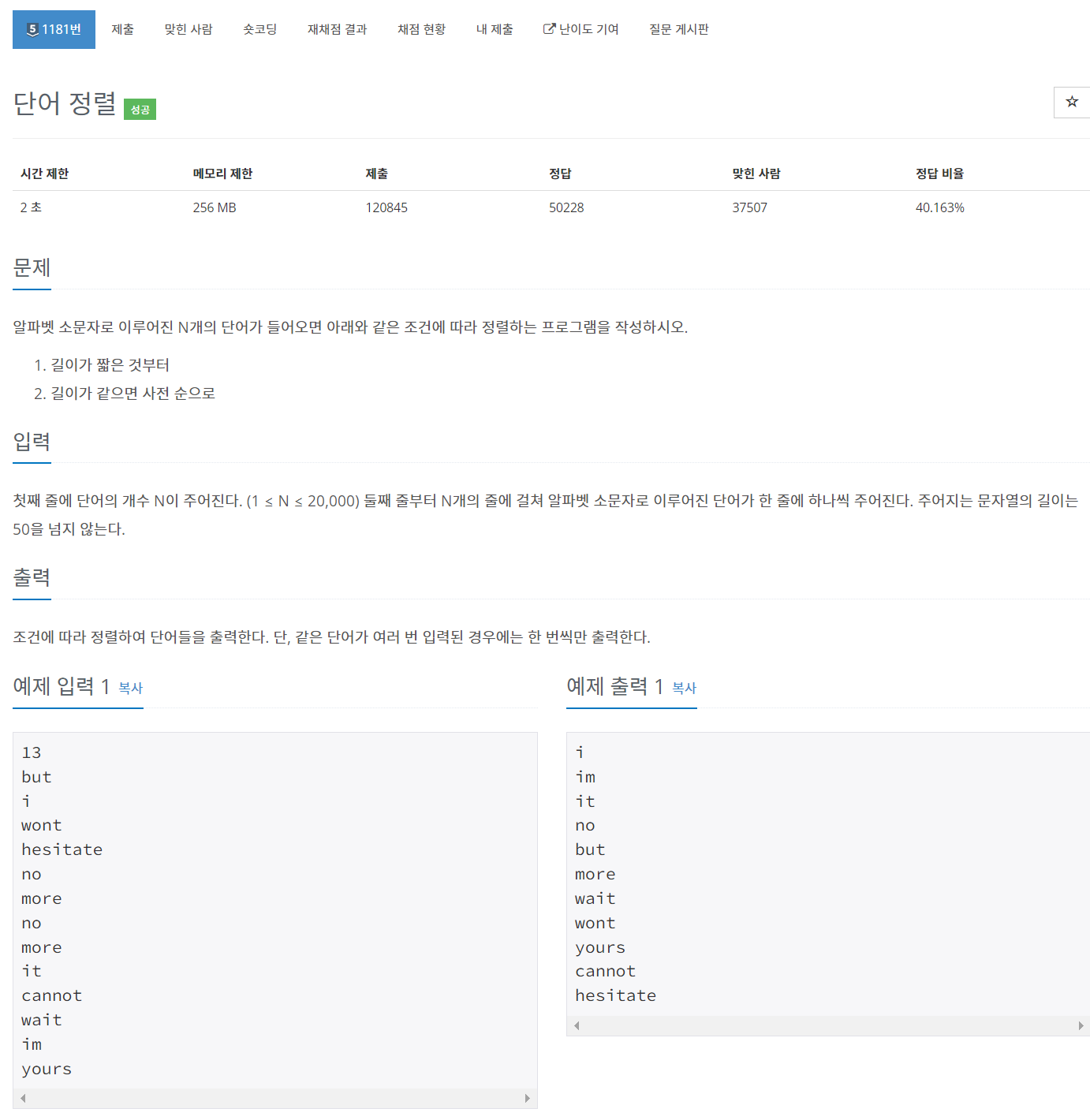 문제 링크 : https://www.acmicpc.net/problem/1181