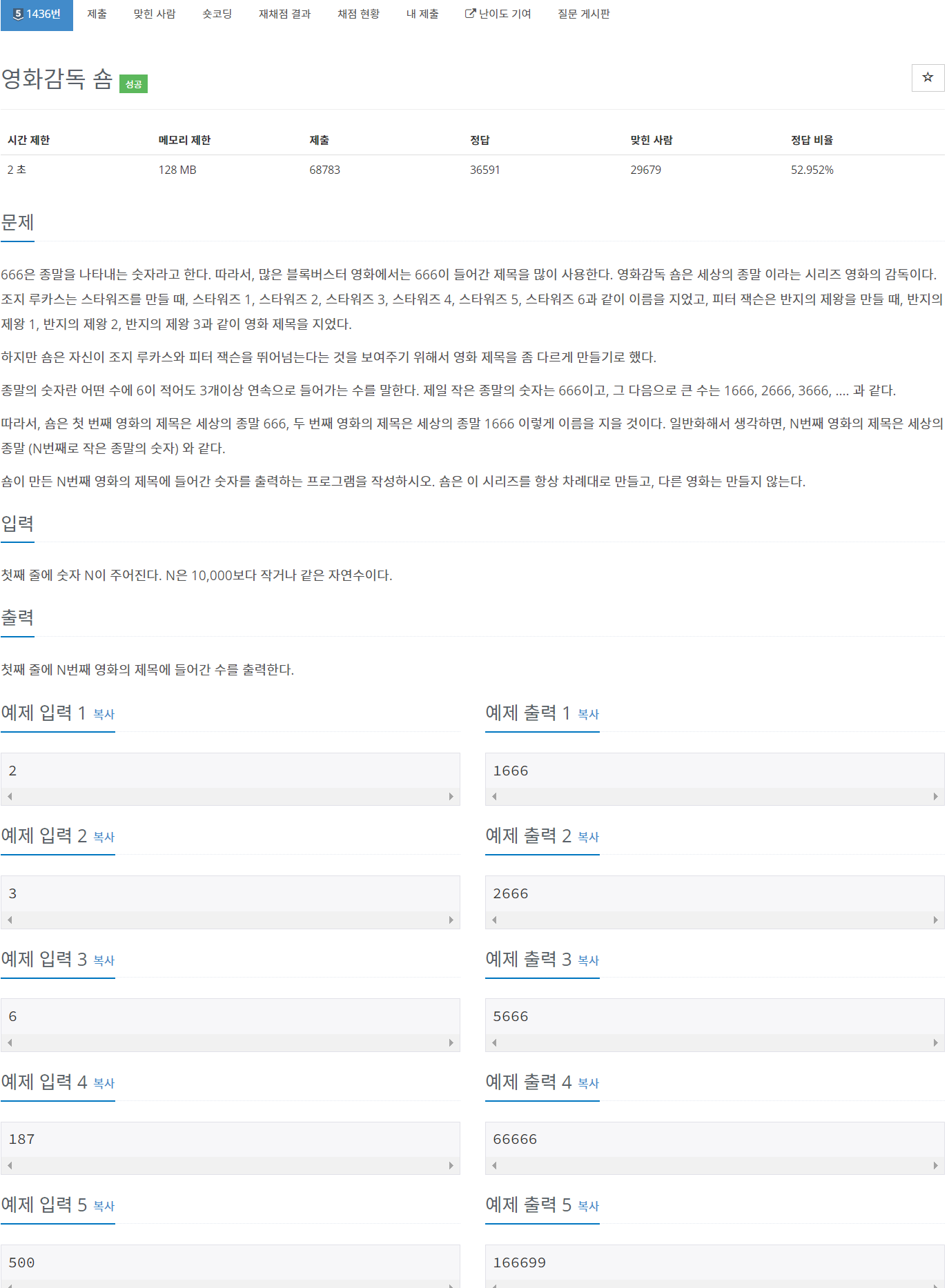 1436번: 영화감독 숌