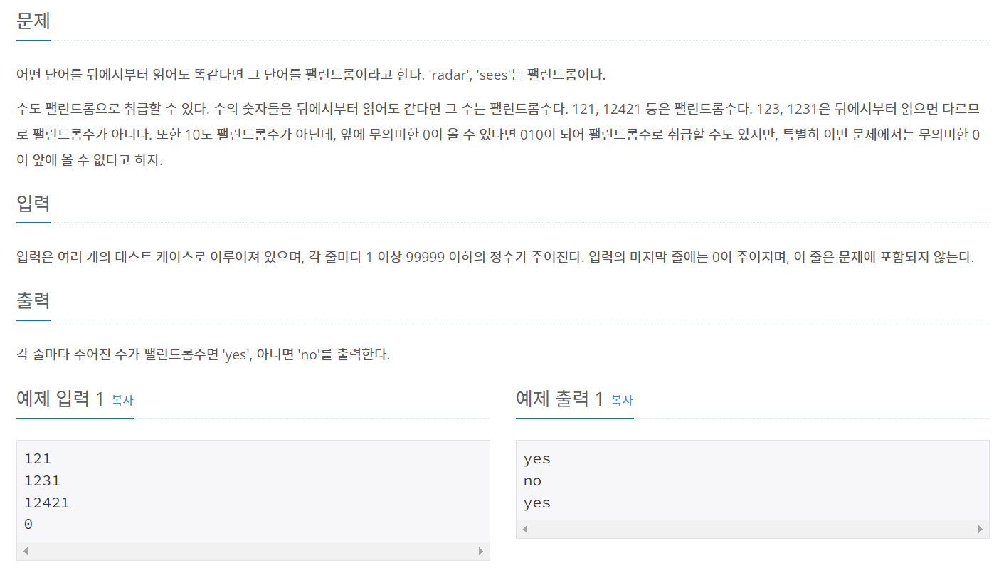 문제 링크 : https://www.acmicpc.net/problem/1259
