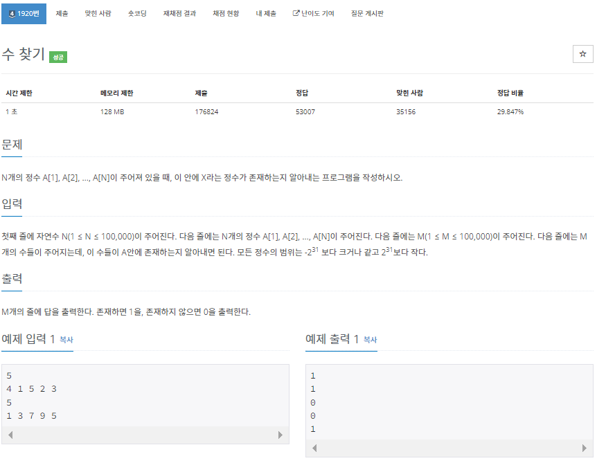 문제 링크 : https://www.acmicpc.net/problem/1920
