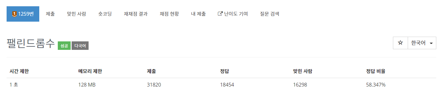 문제 링크 : https://www.acmicpc.net/problem/1259