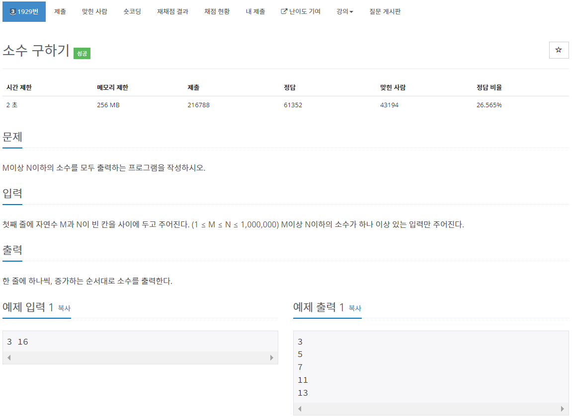 문제 링크 : https://www.acmicpc.net/problem/1929