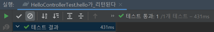 hello가_리턴된다() 메서드를 실행하여 테스트를 통과하는지 확인한다.