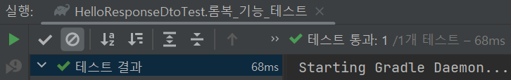 이제 Dto에 적용된 롬복이 잘 작동하는지 간단한 테스트 코드를 통해 확인해 보자.