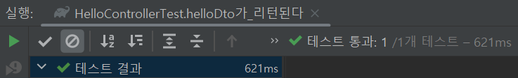 helloDto가_리턴된다() 메서드를 실행하여 추가된 API에 대한 테스트를 실행해 보자.