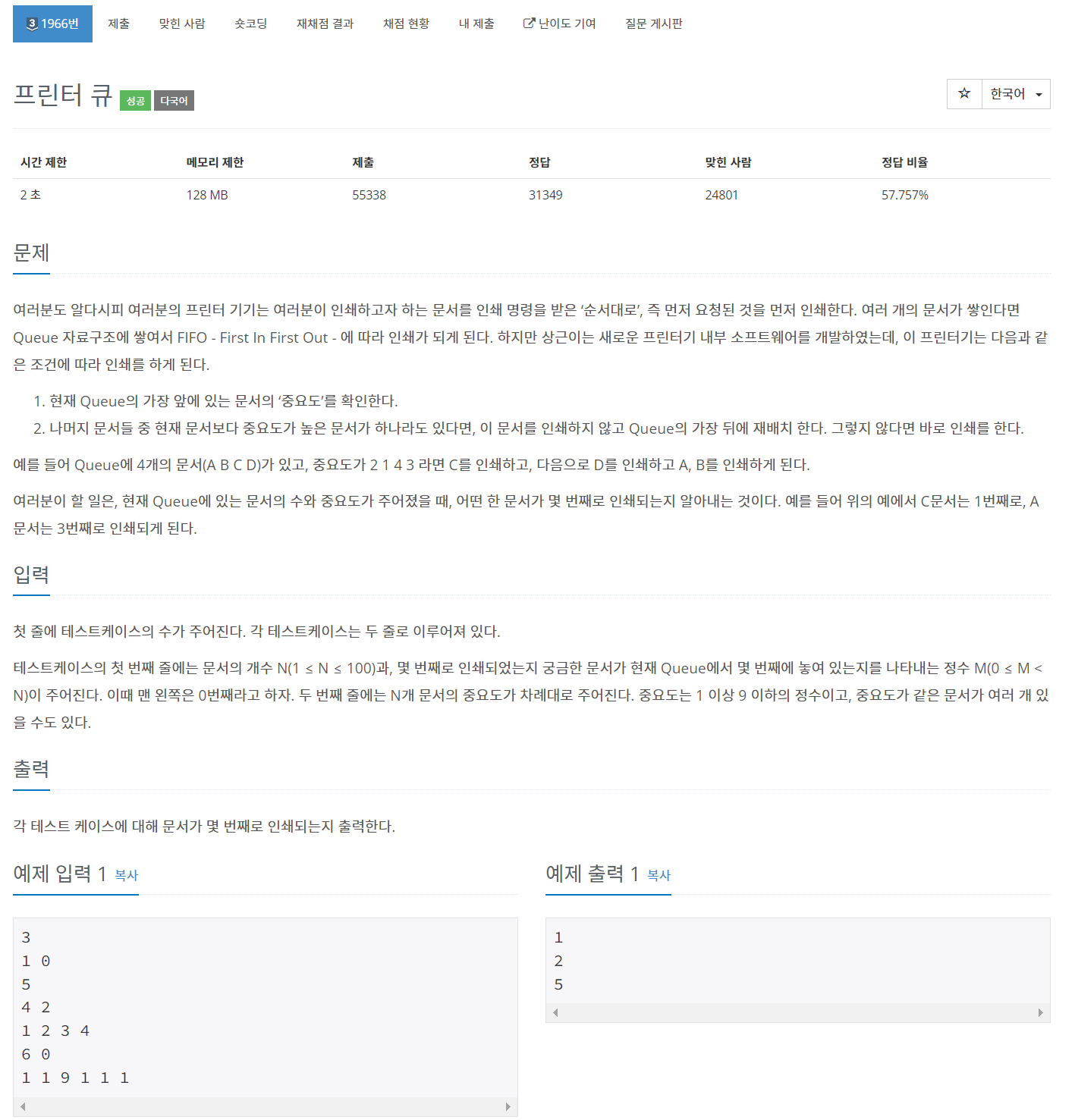 문제 링크 : https://www.acmicpc.net/problem/1966