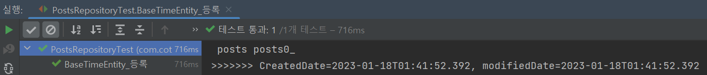 PostsRepositoryTest 클래스에 테스트 메서드를 하나 더 추가하겠다.