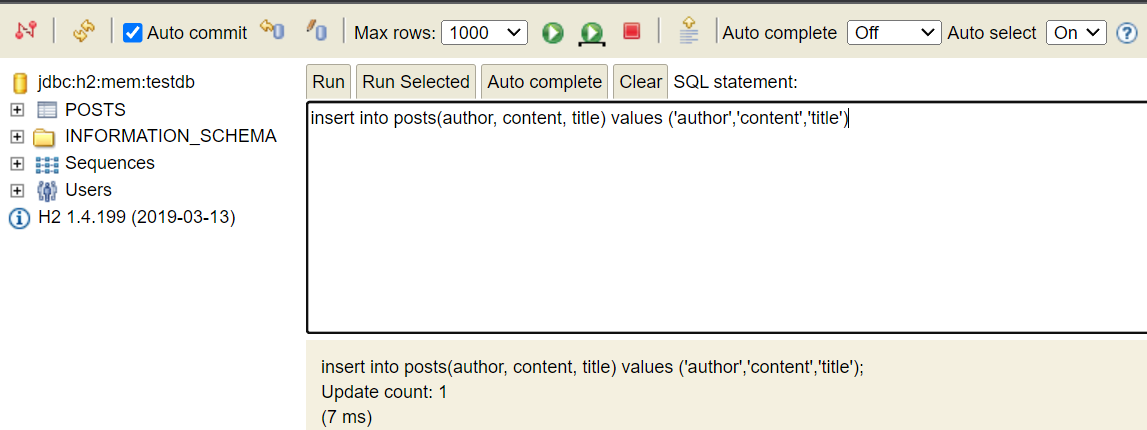 insert 쿼리를 사용해서 Posts 테이블에 데이터를 집어넣었다.