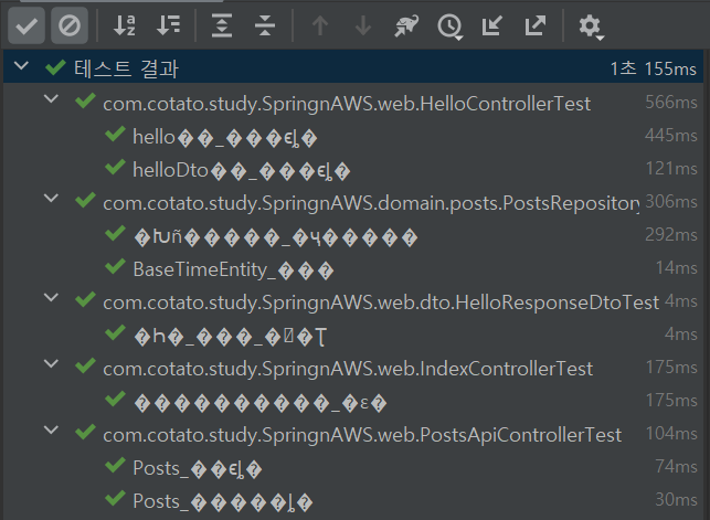 이렇게 설정하고 다시 테스트를 수행하면 Posts 관련 테스트들도 통과함을 확인할 수 있다.