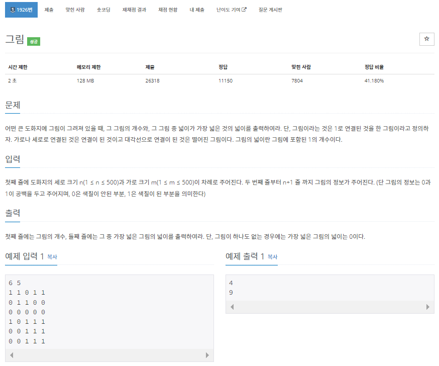 문제 링크 : https://www.acmicpc.net/problem/1926