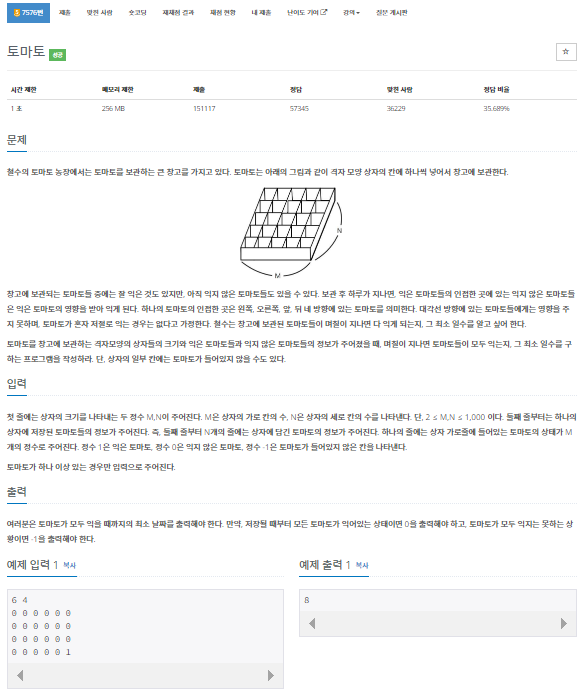 문제 링크 : https://www.acmicpc.net/problem/7576