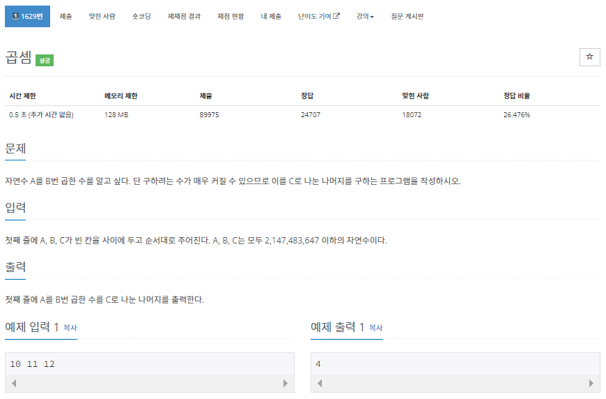 문제 링크 : https://www.acmicpc.net/problem/1629