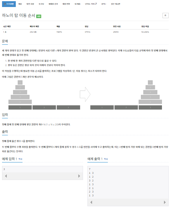 문제 링크 : https://www.acmicpc.net/problem/11729
